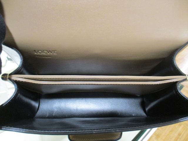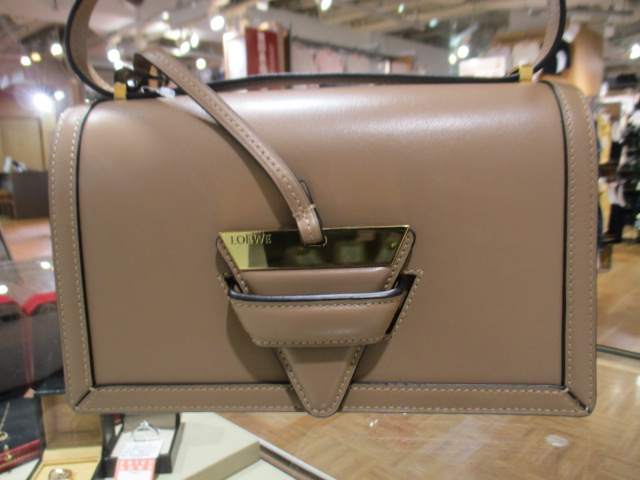 ストリームラインのシルエットにエンボス加工されたロエベのロゴがあしらわれた三角形のメタル付きクロージャーがアクセントです。