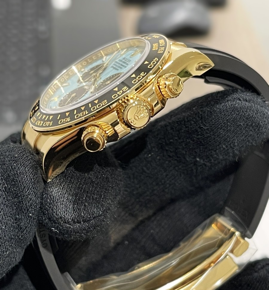 型番:126518LN、素材:K18YG/ラバー、ケース素材:イエローゴールド、ベルト素材:ラバー、ムーブメント:自動巻、重量:約160.2g、ケース径:40x40mm、文字盤:ターコイズ