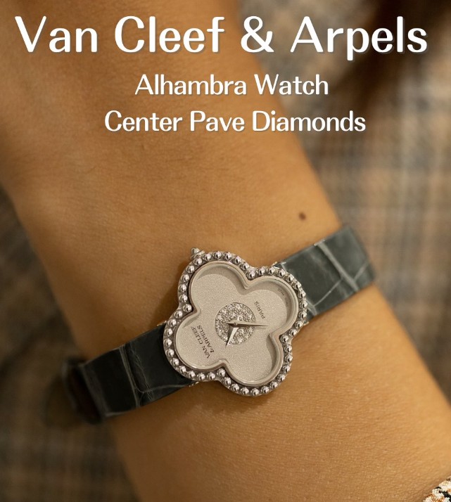 Alhambra Watch is a harmonious blend of jewelry and horology, a creation that speaks to those who value artistry and timeless beauty. The center pave diamonds elevate it beyond mere luxury, making it a statement of individuality and refinement.