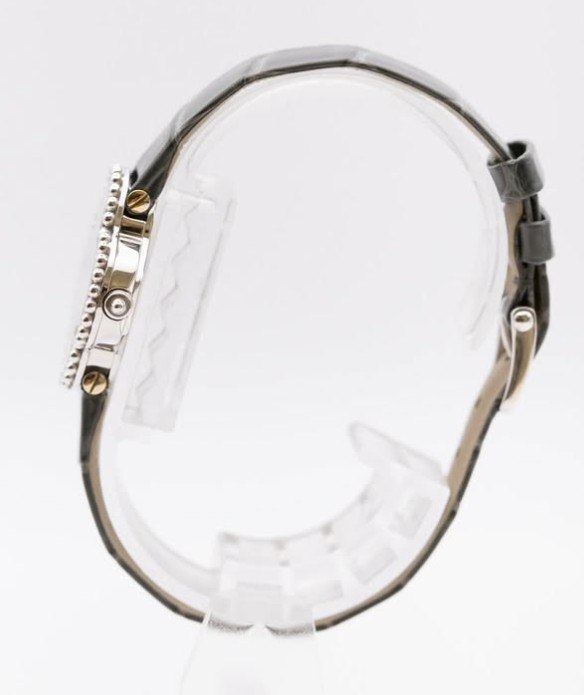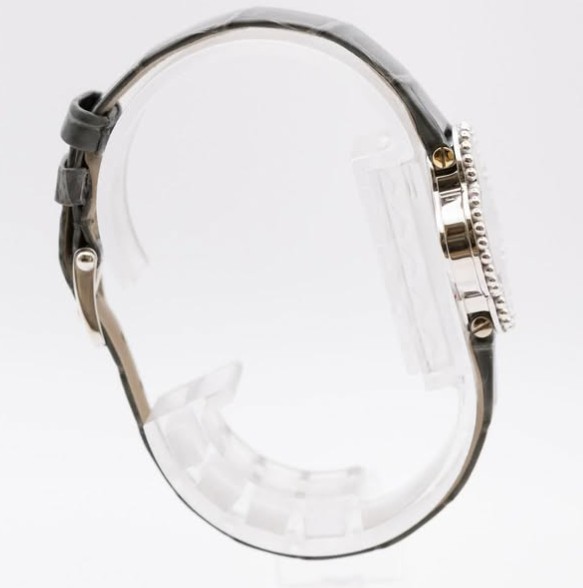 このモデルは、ホワイトゴールドのケースに、センター部分を贅沢に21石のパヴェダイヤモンドで覆った至高の一本。ケース径は約25mmと、女性の手元にしなやかに寄り添うサイズ感。ダイヤモンドの輝きは、単なる装飾を超え、時を告げる瞬間に芸術的な光を添えます。製造年代は2000年頃とされ、希少性の高さも魅力のひとつ。ジュエリーウォッチとしての完成度は、まさにメゾンのクラフツマンシップの結晶です。