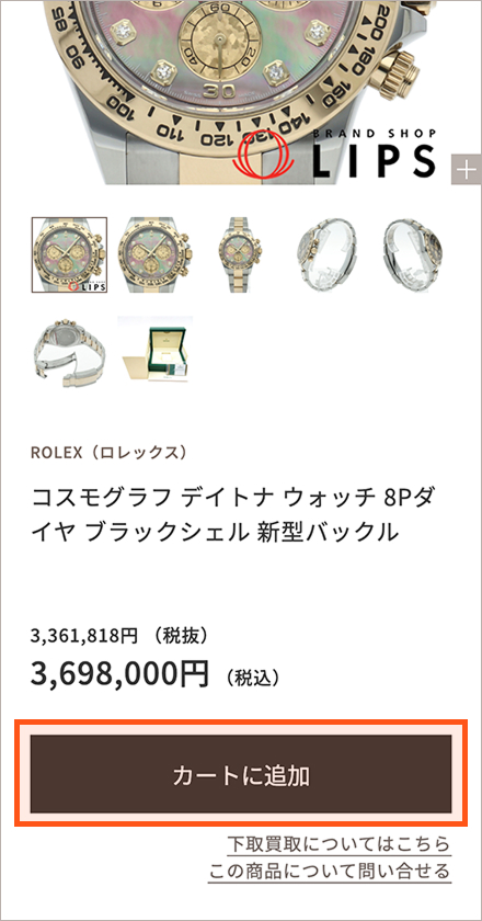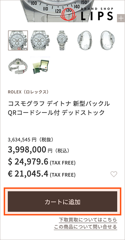 商品の詳細ページから、「カートに追加」ボタンをクリックします。