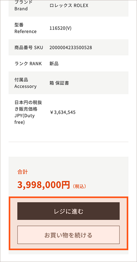 商品内容を確認して「レジに進む」