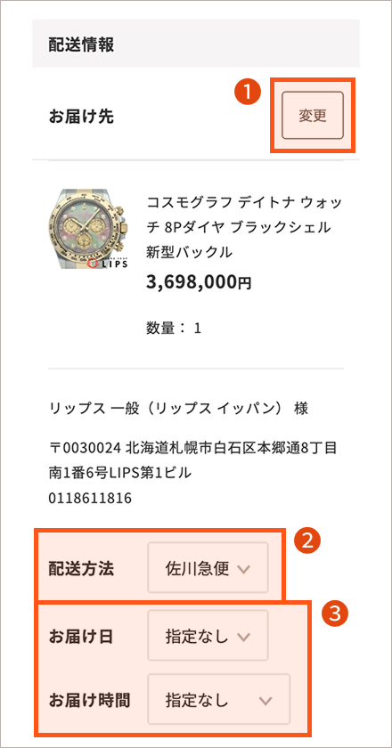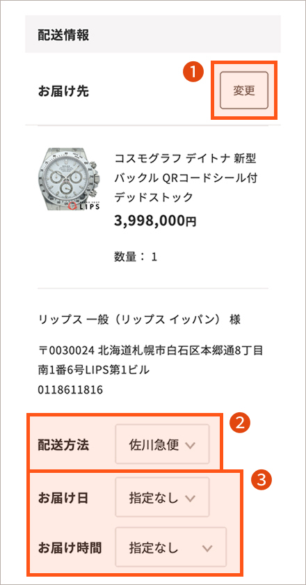 - お届け先を変更したい場合は「変更」をクリックしてください。