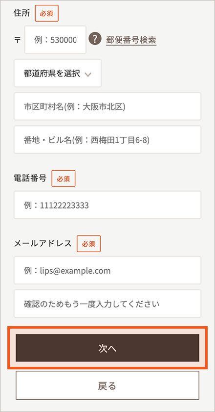 お客様情報の入力