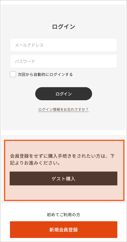 会員登録をせずに購入手続きをされたい方は、ゲスト購入ボタンをクリックしてお進みください。