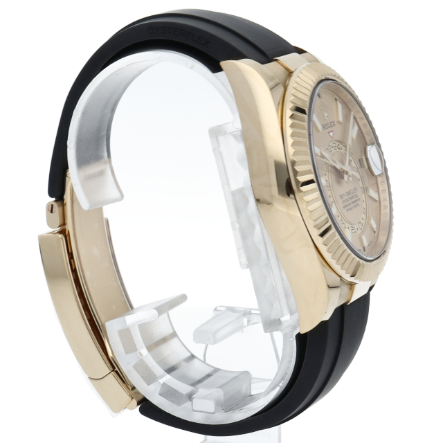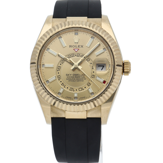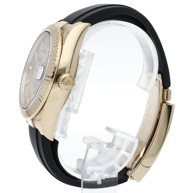 約20年ぶりに追加された新シリーズ「オイスターパーペチュアル スカイドゥエラー」。ロレックスでは初となる年次カレンダーを搭載したモデルです。年次カレンダーは2月の末日だけカレンダー調整が必要で、ほぼ一年間カレンダー調整が必要のない機能です。また、2か国表示のGMT機能も搭載していますので、海外に行く機会の多い方にはとても便利です。