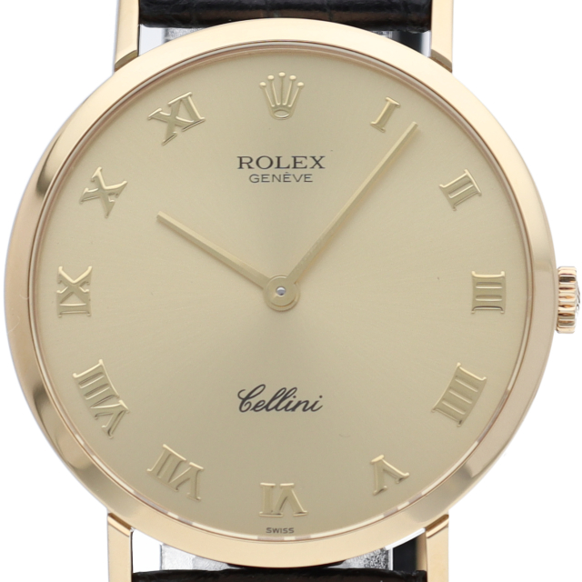 ロレックスのクラシカルで高級感あるデザインが人気の「チェリーニ」。イエローゴールドを贅沢に使用し、シンプルで上品なデザインが人気のエレガンスな1本。