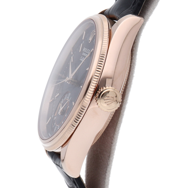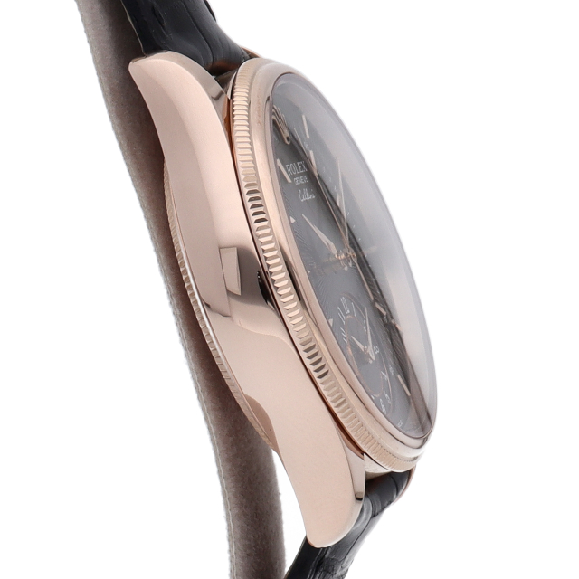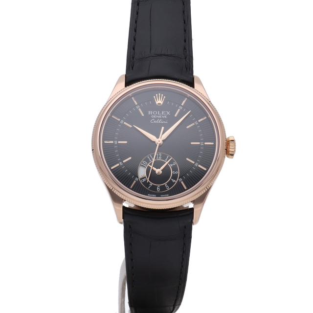 クラシックとエレガンスが融合したロレックスのドレスウォッチ、チェリーニ。6時位置には第二時間帯が表示されており、常にセカンドタイムの時刻が判断可能。この小窓上の9時位置には太陽と月で昼夜を判断するユニークな演出が施されています。