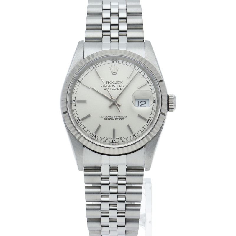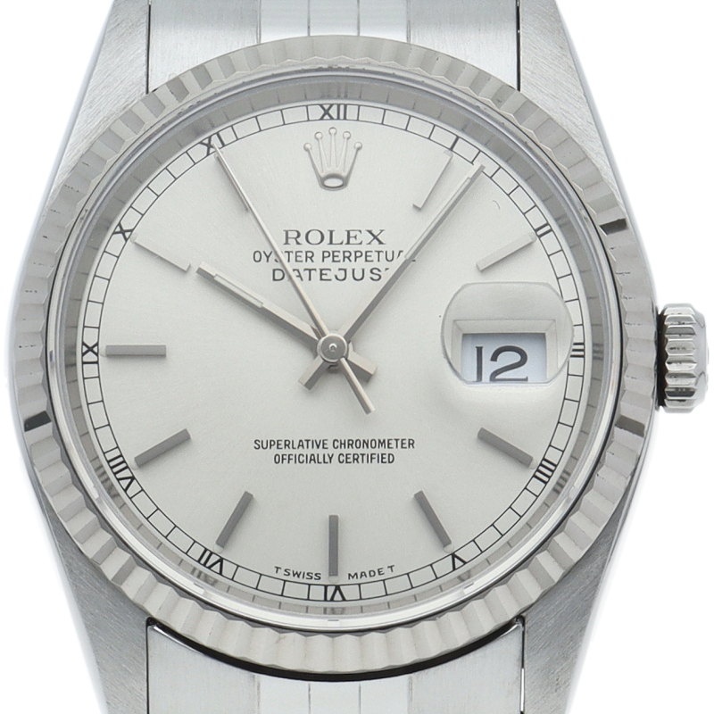 ロレックスのドレスウォッチの王道「デイトジャスト」。ホワイトゴールドとステンレスの組み合わせが上品で高級感を感じさせる1本です。