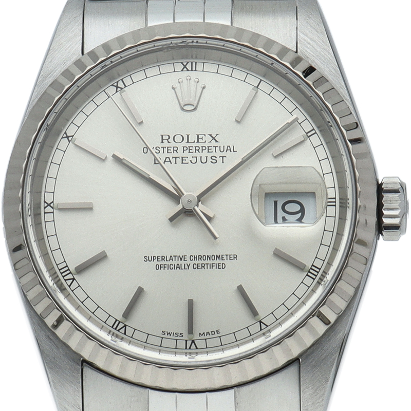 ロレックスのドレスウォッチの王道「デイトジャスト」。ホワイトゴールドとステンレスの組み合わせが上品で高級感を感じさせる1本です。