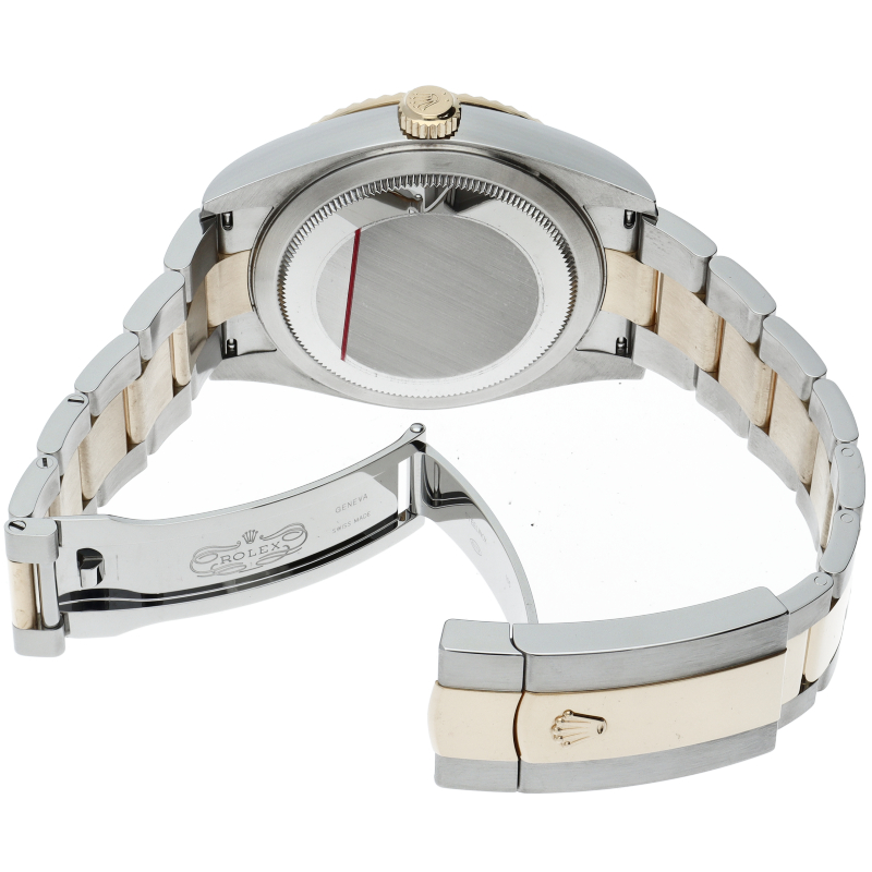 約20年ぶりに追加された新シリーズ「オイスターパーペチュアル スカイドゥエラー」。ロレックスでは初となる年次カレンダーを搭載したモデルです。年次カレンダーは2月の末日だけカレンダー調整が必要で、ほぼ一年間カレンダー調整が必要のない機能です。また、2か国表示のGMT機能も搭載していますので、海外に行く機会の多い方にはとても便利です。