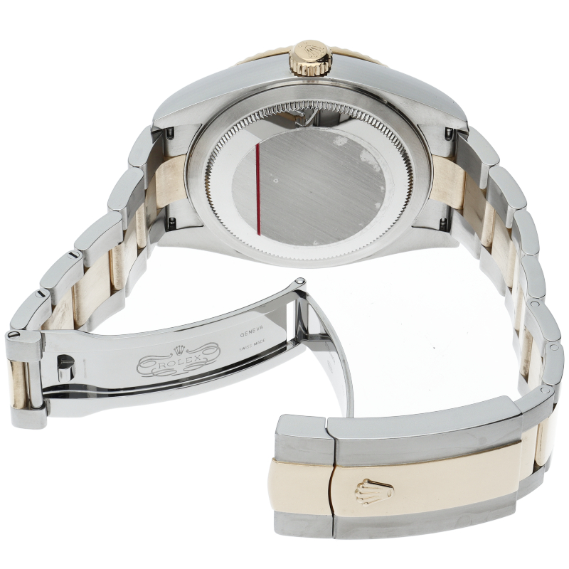 約20年ぶりに追加された新シリーズ「オイスターパーペチュアル スカイドゥエラー」。ロレックスでは初となる年次カレンダーを搭載したモデルです。年次カレンダーは2月の末日だけカレンダー調整が必要で、ほぼ一年間カレンダー調整が必要のない機能です。また、2か国表示のGMT機能も搭載していますので、海外に行く機会の多い方にはとても便利です。