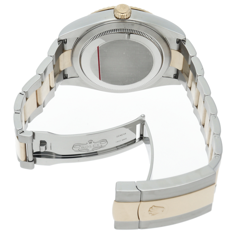 約20年ぶりに追加された新シリーズ「オイスターパーペチュアル スカイドゥエラー」。ロレックスでは初となる年次カレンダーを搭載したモデルです。年次カレンダーは2月の末日だけカレンダー調整が必要で、ほぼ一年間カレンダー調整が必要のない機能です。また、2か国表示のGMT機能も搭載していますので、海外に行く機会の多い方にはとても便利です。