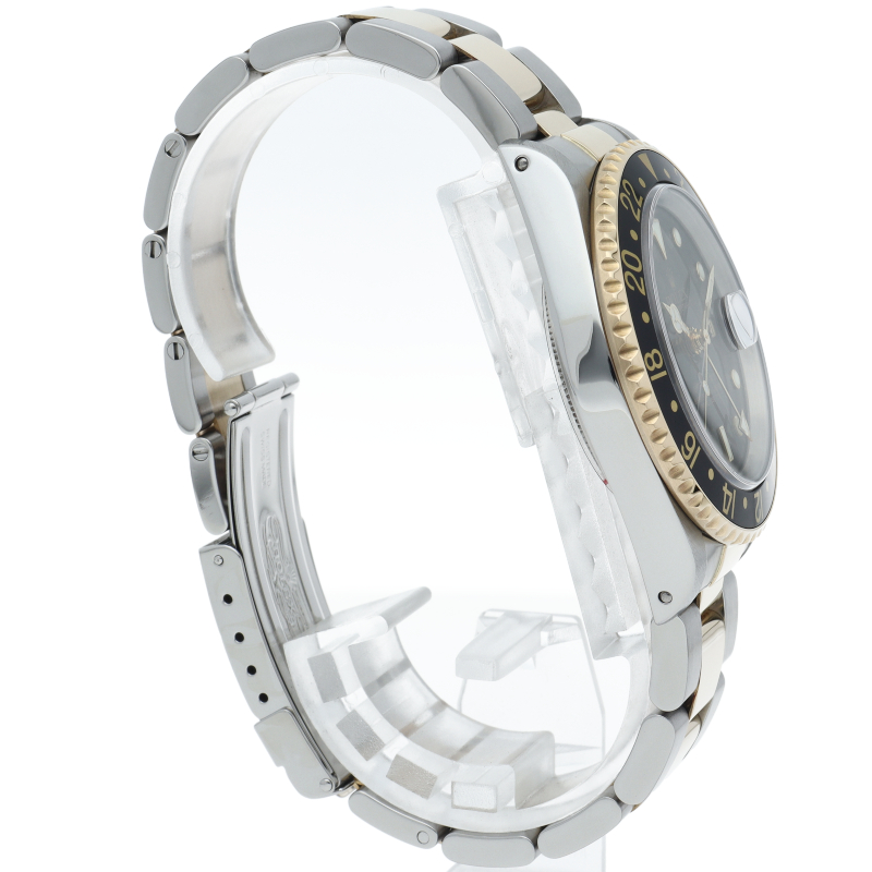 GMTマスター2のモデルチェンジにともない生産終了となった「16710」。今でも根強い人気と安定した相場が魅力です。便利なGMT機能付で実用性の高い1本。豪華なイエローゴールドとのコンビモデル。