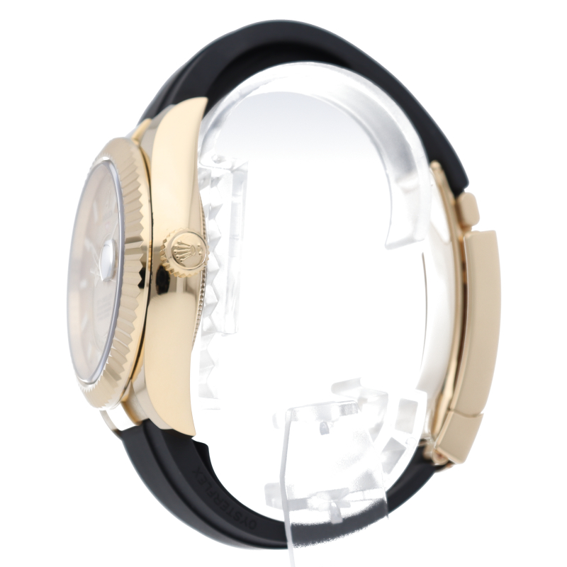 約20年ぶりに追加された新シリーズ「オイスターパーペチュアル スカイドゥエラー」。ロレックスでは初となる年次カレンダーを搭載したモデルです。年次カレンダーは2月の末日だけカレンダー調整が必要で、ほぼ一年間カレンダー調整が必要のない機能です。また、2か国表示のGMT機能も搭載していますので、海外に行く機会の多い方にはとても便利です。