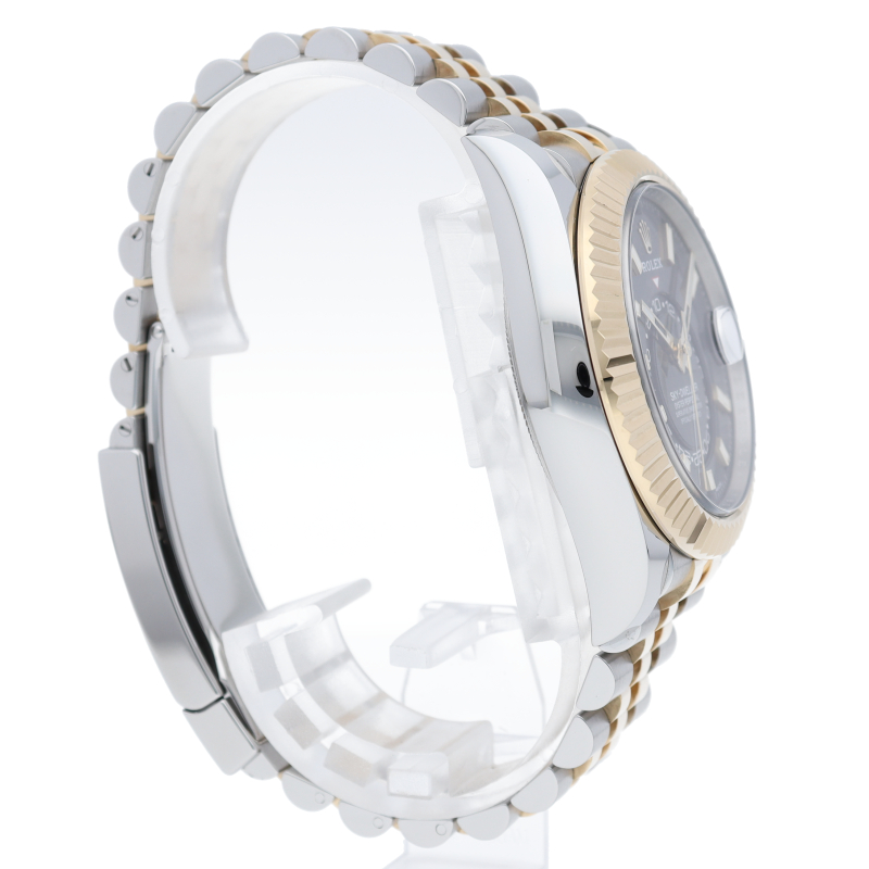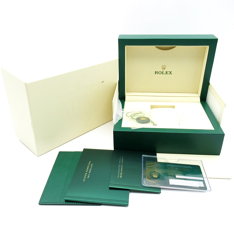 約20年ぶりに追加された新シリーズ「オイスターパーペチュアル スカイドゥエラー」。ロレックスでは初となる年次カレンダーを搭載したモデルです。年次カレンダーは2月の末日だけカレンダー調整が必要で、ほぼ一年間カレンダー調整が必要のない機能です。また、2か国表示のGMT機能も搭載していますので、海外に行く機会の多い方にはとても便利です。