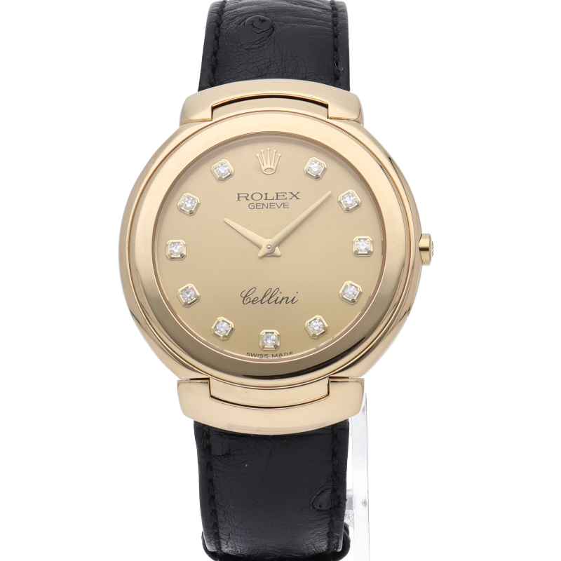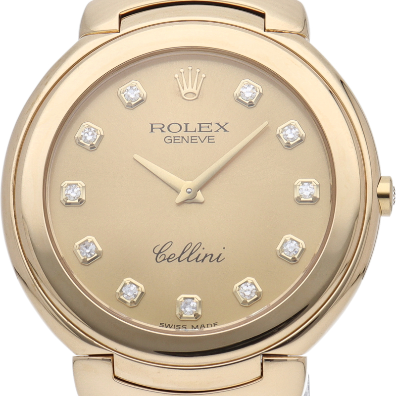 ロレックスのクラシカルで高級感あるデザインが人気の「チェリーニ」。イエローゴールドを贅沢に使用し、シンプルで上品なデザインが人気のエレガンスな1本。