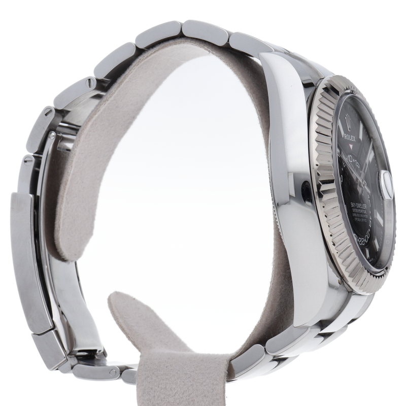 ロレックス初のアニュアルカレンダー機能を搭載したケース径42mmの大型ドレスウォッチです。各アワーインデックスの外側の窓にポインター式で月を表示している、ロレックスの中でも複雑な機構を備えてます。