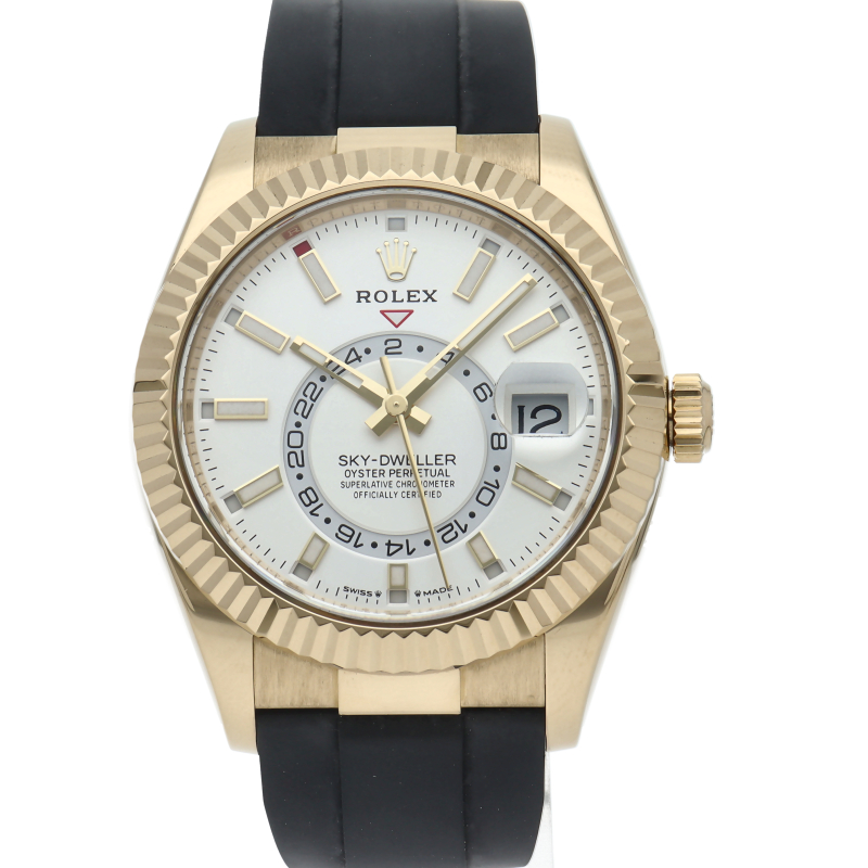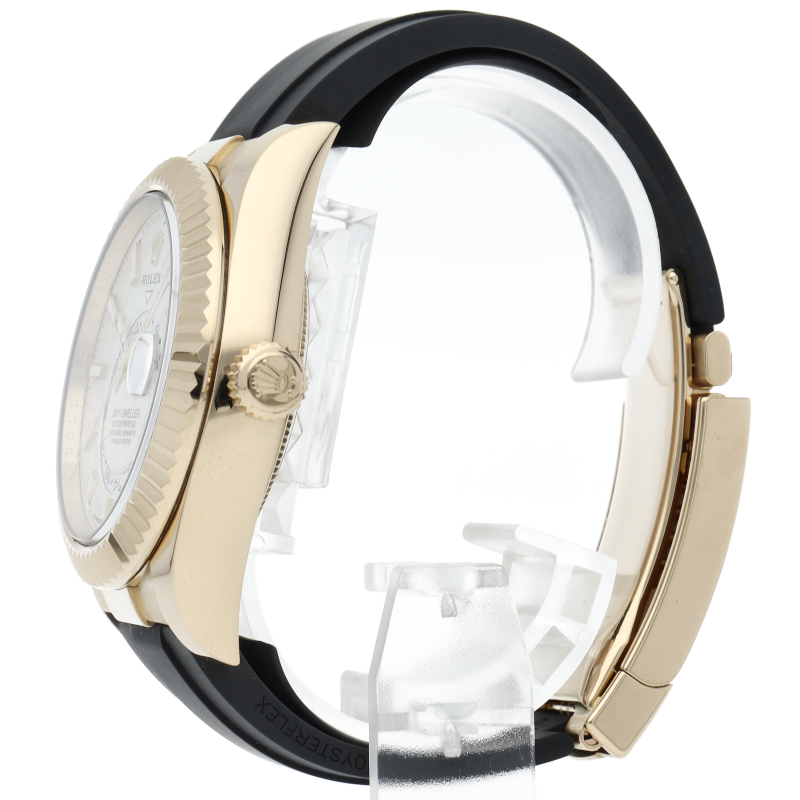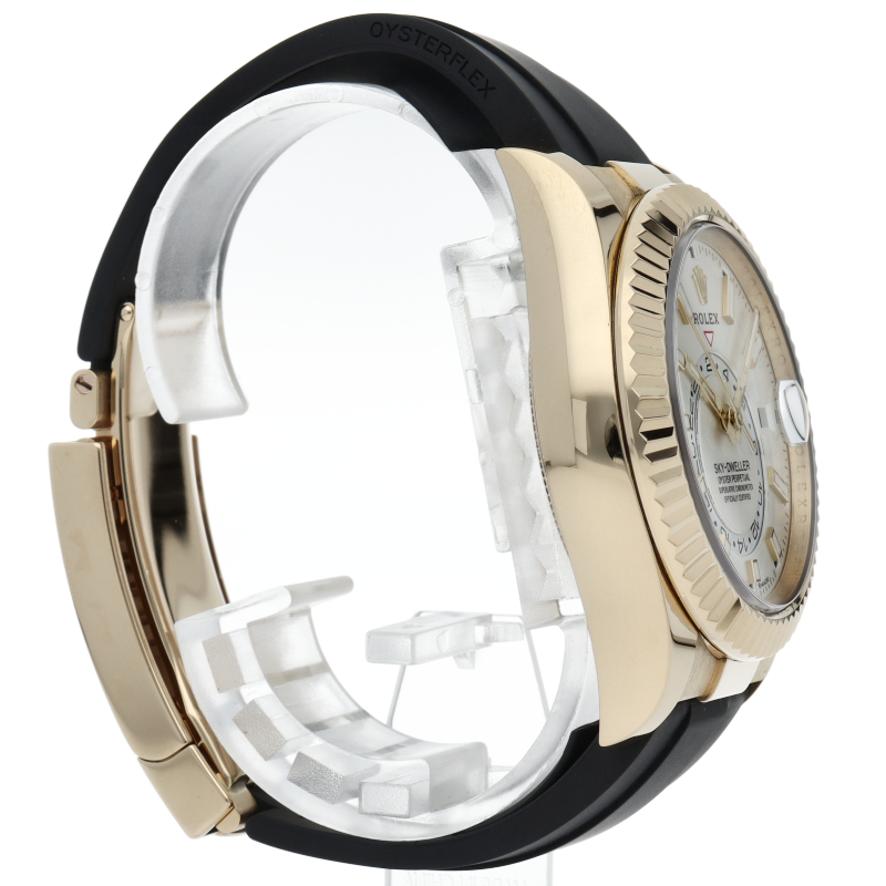 ロレックス初のアニュアルカレンダー機能を搭載したケース径42mmの大型ドレスウォッチです。各アワーインデックスの外側の窓にポインター式で月を表示している、ロレックスの中でも複雑な機構を備えてます。オイスターフレックス ブレスレットは、超弾性メタルブレードをブラック エラストマーでコーティングしたもの。ラバーベルトの耐水性やスポーティーさを纏いながらも、メタルブレスレットに匹敵する強靭性、耐久性を誇ります。