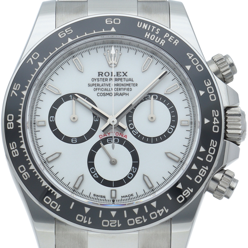 2023年新たにモデルチェンジしたコスモグラフ デイトナ。ロレックスのクロノグラフモデルとして登場したデイトナは、2023年に60周年を迎え第七世代となりました。変更点は、ベゼルのフチ周りにミドルケースと同一素材のメタルが使用され、ムーブメントにはコラムホイール&垂直クラッチ式のキャリバー4131を搭載。72時間パワーリザーブを誇ります。