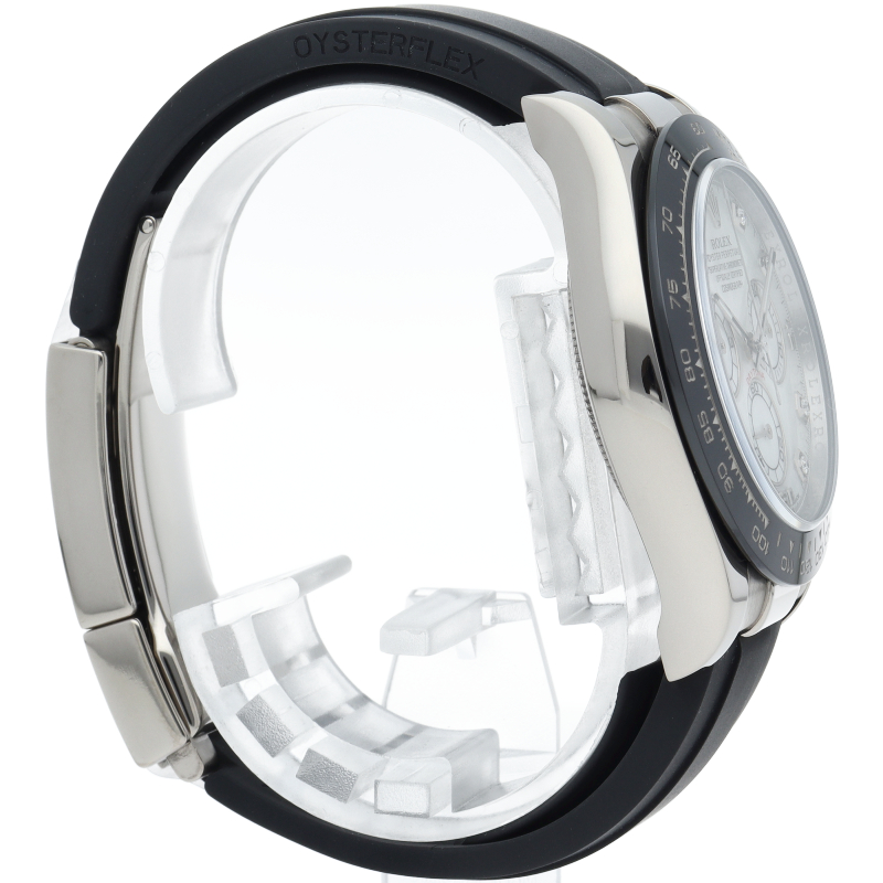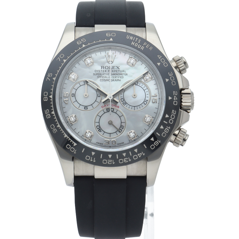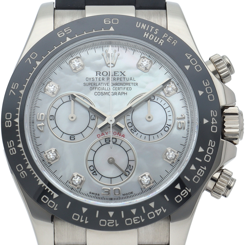 ロレックスのスポーツモデルの最高峰に君臨する「デイトナ」。自社開発クロノグラフムーブメント「Cal.4130」を搭載、機能性・デザイン性を兼ね備えた人気ウォッチ。セラクロムタキメーターベゼル仕様の人気モデルです。すでに生産が終了しているシェル文字盤・8Pダイヤ仕様。