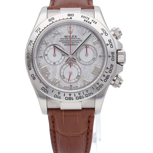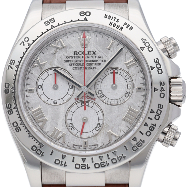 ゼニス社の世界最高峰ムーブメント「エルプリメロ」を搭載したロレックスのスポーツモデルの最上級モデル「デイトナ」。隕石を用いた希少なメテオライト文字盤です。