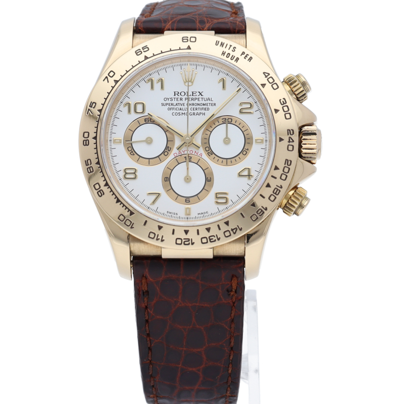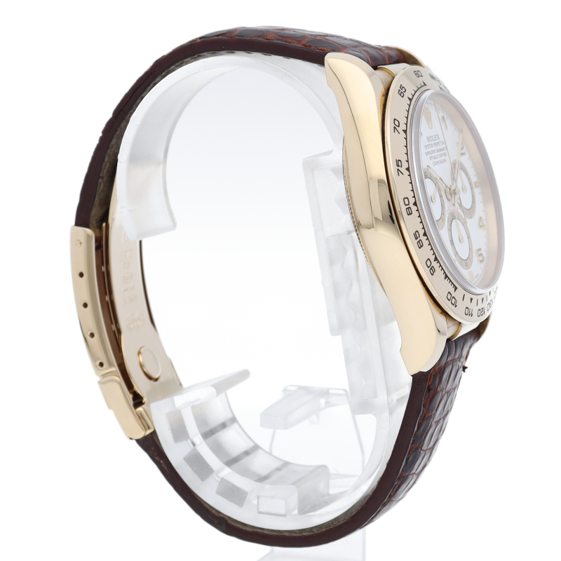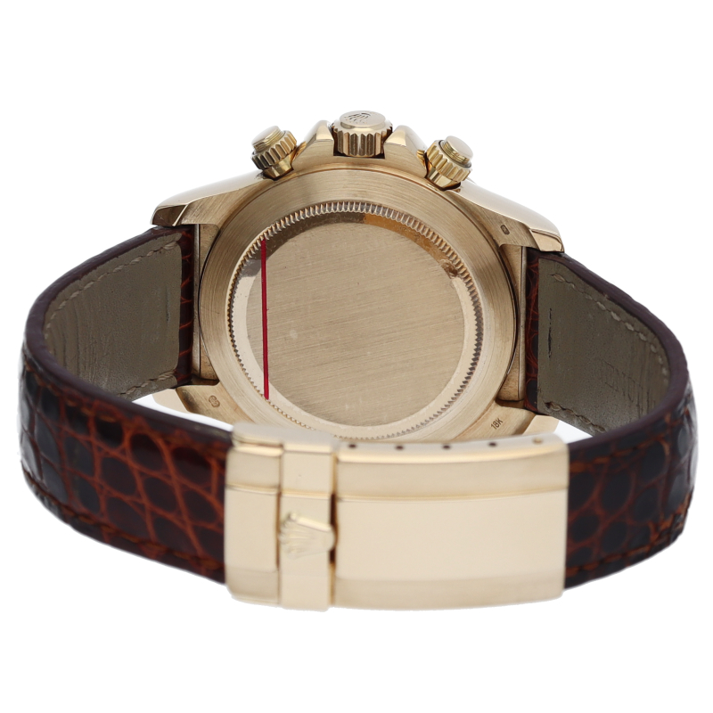ゼニス社の世界最高峰ムーブメント「エルプリメロ」を搭載したロレックスのスポーツモデルの最上級モデル「デイトナ」。イエローゴールドケースがラグジュアリーな一本です。