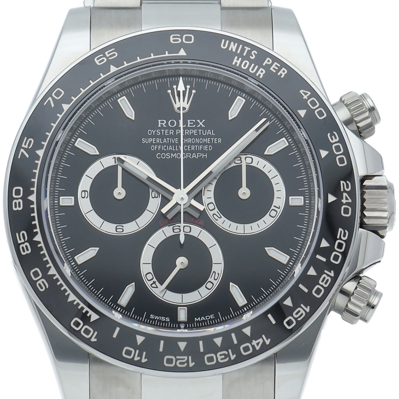 2023年新たにモデルチェンジしたコスモグラフ デイトナ。ロレックスのクロノグラフモデルとして登場したデイトナは、2023年に60周年を迎え第七世代となりました。変更点は、ベゼルのフチ周りにミドルケースと同一素材のメタルが使用され、ムーブメントにはコラムホイール&垂直クラッチ式のキャリバー4131を搭載。72時間パワーリザーブを誇ります。