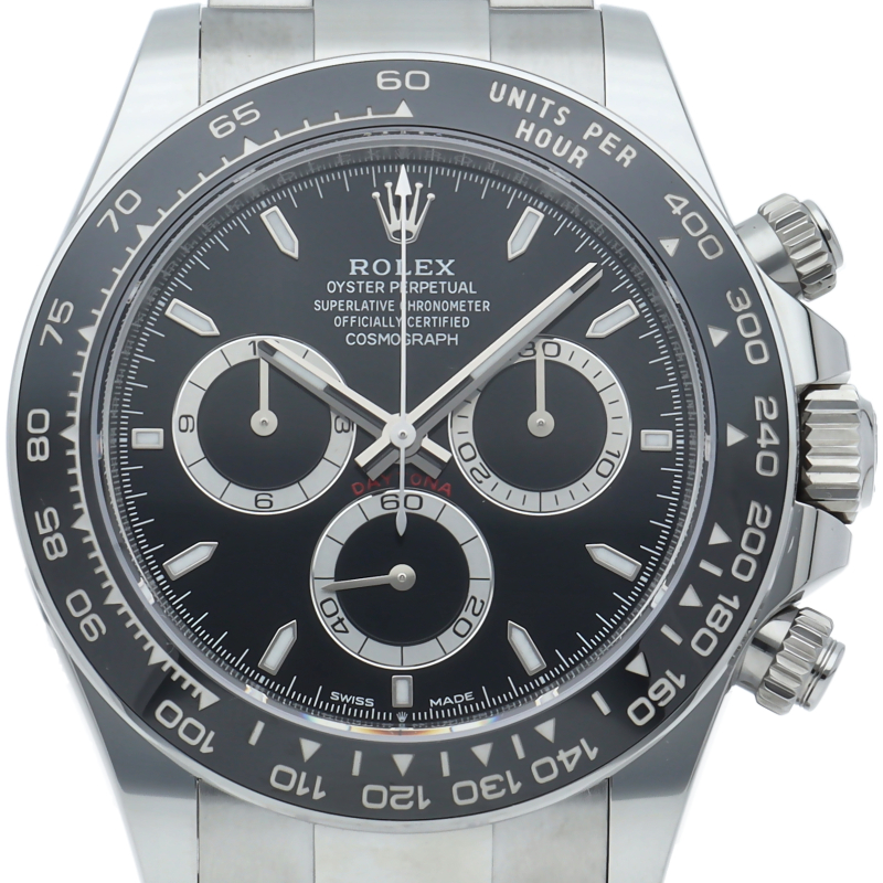 2023年新たにモデルチェンジしたコスモグラフ デイトナ。ロレックスのクロノグラフモデルとして登場したデイトナは、2023年に60周年を迎え第七世代となりました。変更点は、ベゼルのフチ周りにミドルケースと同一素材のメタルが使用され、ムーブメントにはコラムホイール&垂直クラッチ式のキャリバー4131を搭載。72時間パワーリザーブを誇ります。