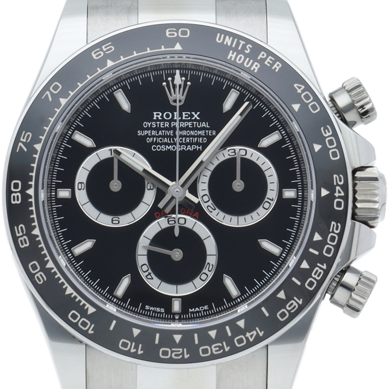 2023年新たにモデルチェンジしたコスモグラフ デイトナ。ロレックスのクロノグラフモデルとして登場したデイトナは、2023年に60周年を迎え第七世代となりました。変更点は、ベゼルのフチ周りにミドルケースと同一素材のメタルが使用され、ムーブメントにはコラムホイール&垂直クラッチ式のキャリバー4131を搭載。72時間パワーリザーブを誇ります。