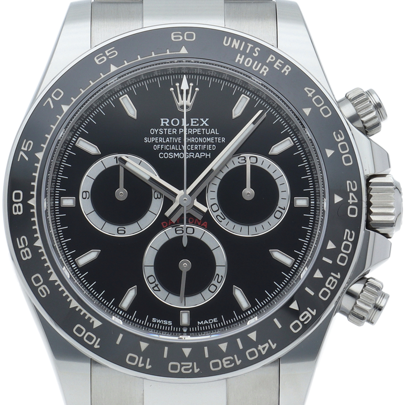 2023年新たにモデルチェンジしたコスモグラフ デイトナ。ロレックスのクロノグラフモデルとして登場したデイトナは、2023年に60周年を迎え第七世代となりました。変更点は、ベゼルのフチ周りにミドルケースと同一素材のメタルが使用され、ムーブメントにはコラムホイール&垂直クラッチ式のキャリバー4131を搭載。72時間パワーリザーブを誇ります。