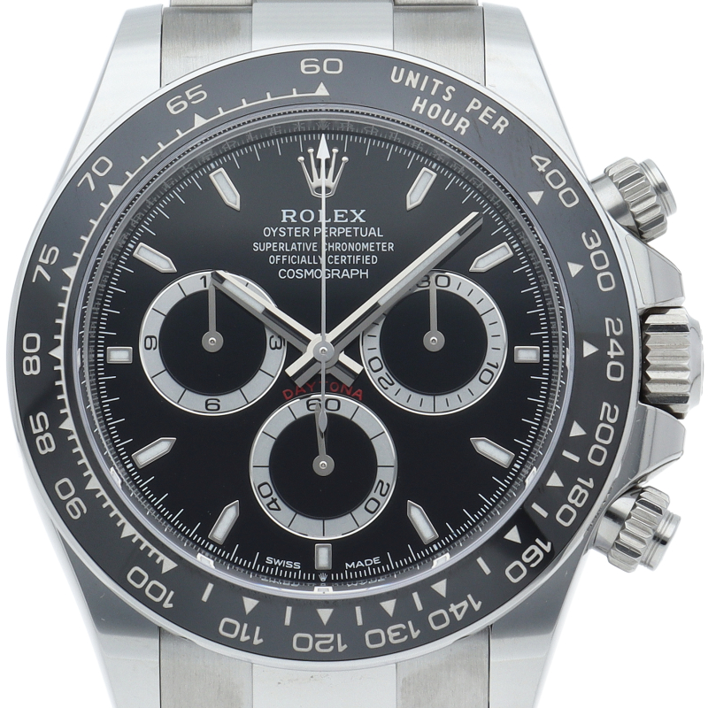 2023年新たにモデルチェンジしたコスモグラフ デイトナ。ロレックスのクロノグラフモデルとして登場したデイトナは、2023年に60周年を迎え第七世代となりました。変更点は、ベゼルのフチ周りにミドルケースと同一素材のメタルが使用され、ムーブメントにはコラムホイール&垂直クラッチ式のキャリバー4131を搭載。72時間パワーリザーブを誇ります。
