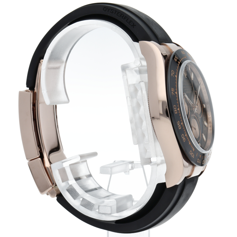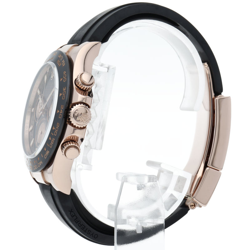 ロレックスの人気モデル「デイトナ」に、2011年に新たにラインナップされたエバーローズゴールドモデルに黒のセラミックベゼルを装着したタイプ。文字盤のブラックと相性抜群で上品な輝きがあります。