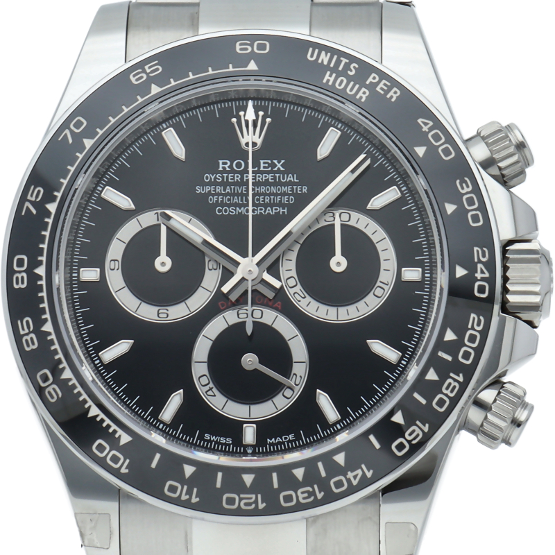 2023年新たにモデルチェンジしたコスモグラフ デイトナ。ロレックスのクロノグラフモデルとして登場したデイトナは、2023年に60周年を迎え第七世代となりました。変更点は、ベゼルのフチ周りにミドルケースと同一素材のメタルが使用され、ムーブメントにはコラムホイール&垂直クラッチ式のキャリバー4131を搭載。72時間パワーリザーブを誇ります。