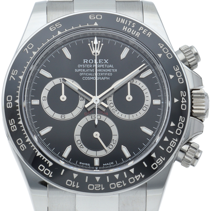 2023年新たにモデルチェンジしたコスモグラフ デイトナ。ロレックスのクロノグラフモデルとして登場したデイトナは、2023年に60周年を迎え第七世代となりました。変更点は、ベゼルのフチ周りにミドルケースと同一素材のメタルが使用され、ムーブメントにはコラムホイール&垂直クラッチ式のキャリバー4131を搭載。72時間パワーリザーブを誇ります。