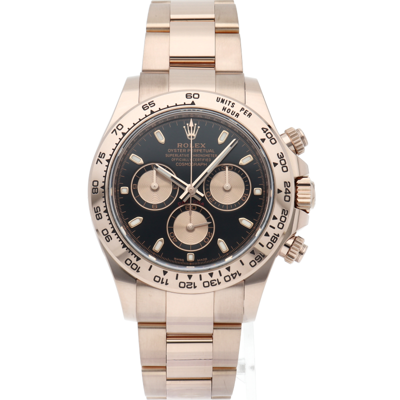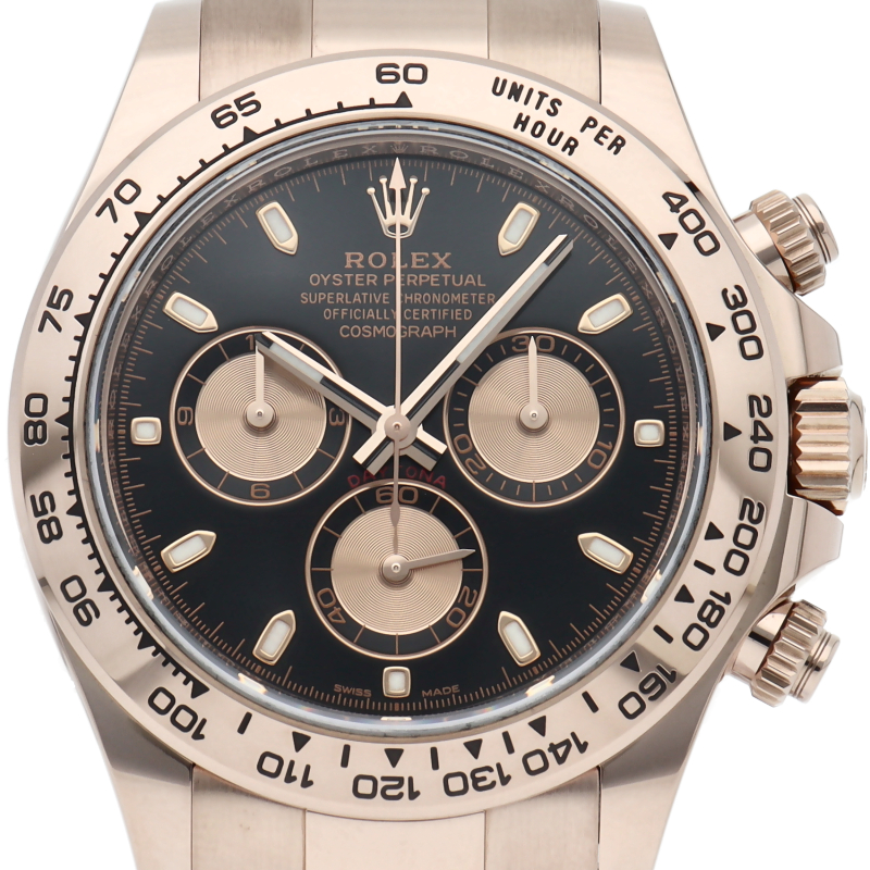 ロレックスのスポーツモデルの最高峰に君臨する「デイトナ」。自社開発クロノグラフムーブメント「Cal.4130」を搭載、機能性・デザイン性を兼ね備えた人気ウォッチ。エバーローズゴールドはロレックスが独自で開発した合金で、ラグジュアリーな雰囲気を演出。