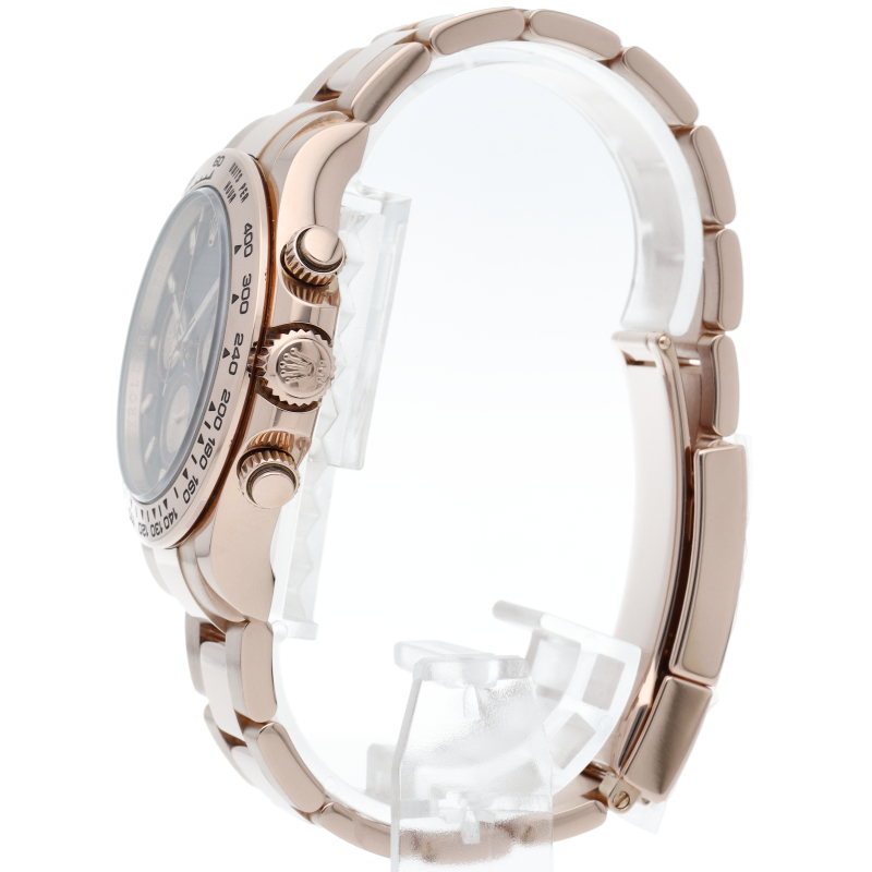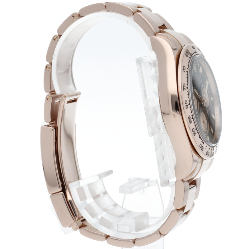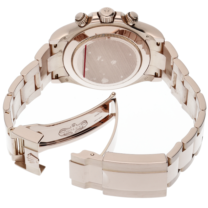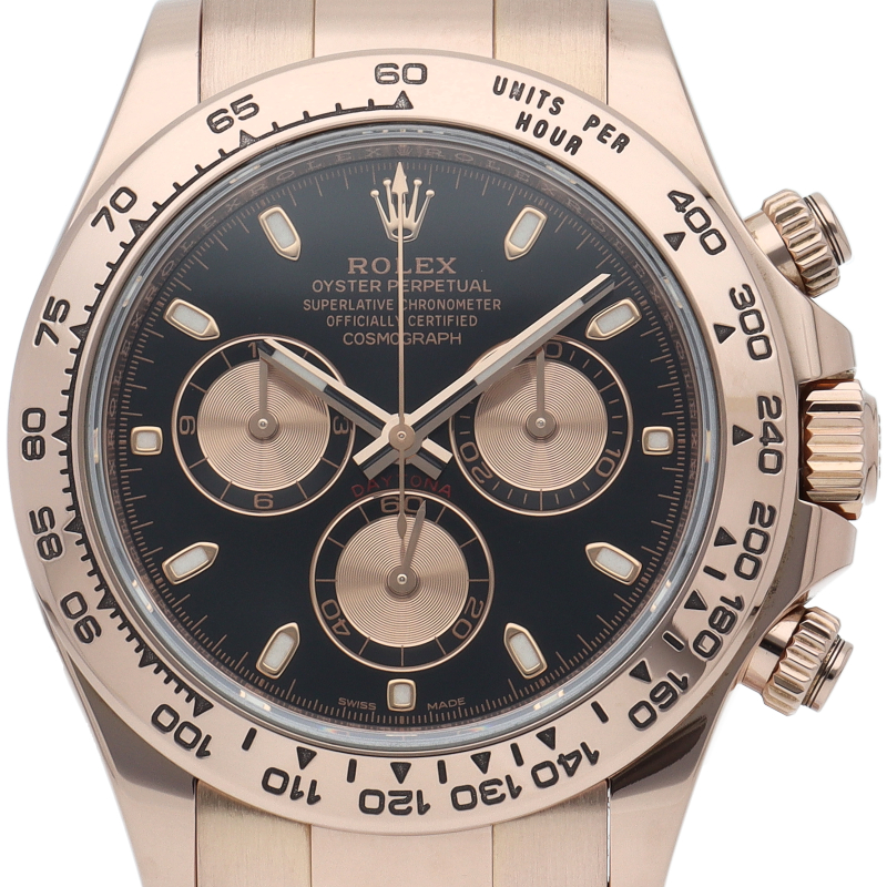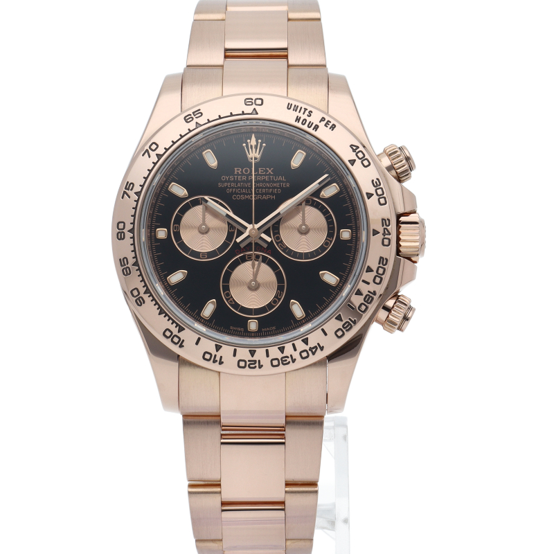 ロレックスのスポーツモデルの最高峰に君臨する「デイトナ」。自社開発クロノグラフムーブメント「Cal.4130」を搭載、機能性・デザイン性を兼ね備えた人気ウォッチ。エバーローズゴールドはロレックスが独自で開発した合金で、ラグジュアリーな雰囲気を演出。