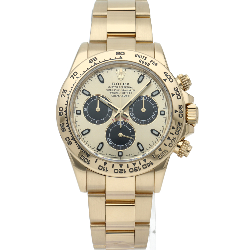 ロレックスのスポーツモデルの最高峰に君臨する「デイトナ」。イエローゴールド仕様で高級感溢れるステータスウォッチ。