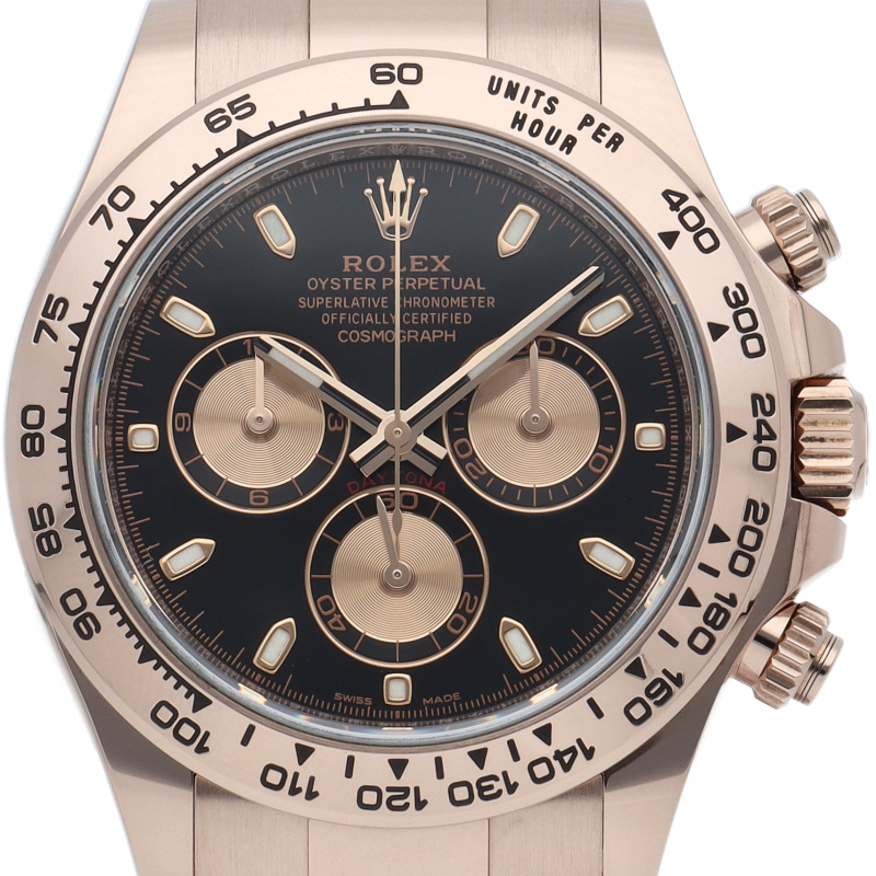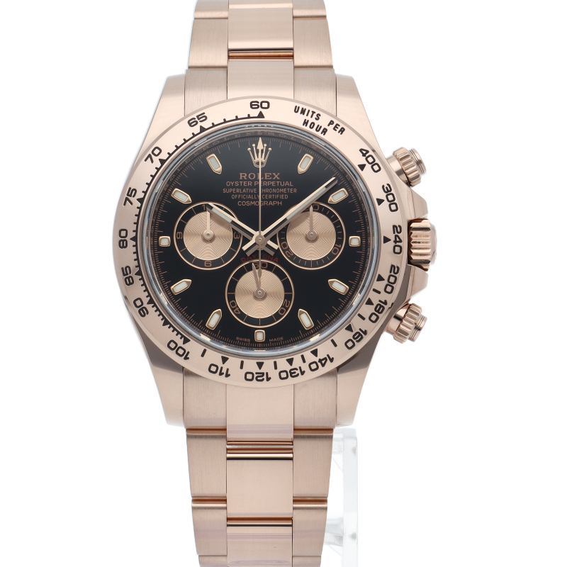 ロレックスのスポーツモデルの最高峰に君臨する「デイトナ」。自社開発クロノグラフムーブメント「Cal.4130」を搭載、機能性・デザイン性を兼ね備えた人気ウォッチ。エバーローズゴールドはロレックスが独自で開発した合金で、ラグジュアリーな雰囲気を演出。