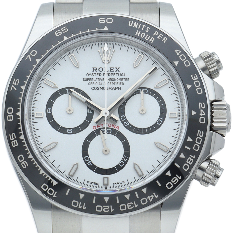 2023年新たにモデルチェンジしたコスモグラフ デイトナ。ロレックスのクロノグラフモデルとして登場したデイトナは、2023年に60周年を迎え第七世代となりました。変更点は、ベゼルのフチ周りにミドルケースと同一素材のメタルが使用され、ムーブメントにはコラムホイール&垂直クラッチ式のキャリバー4131を搭載。72時間パワーリザーブを誇ります。