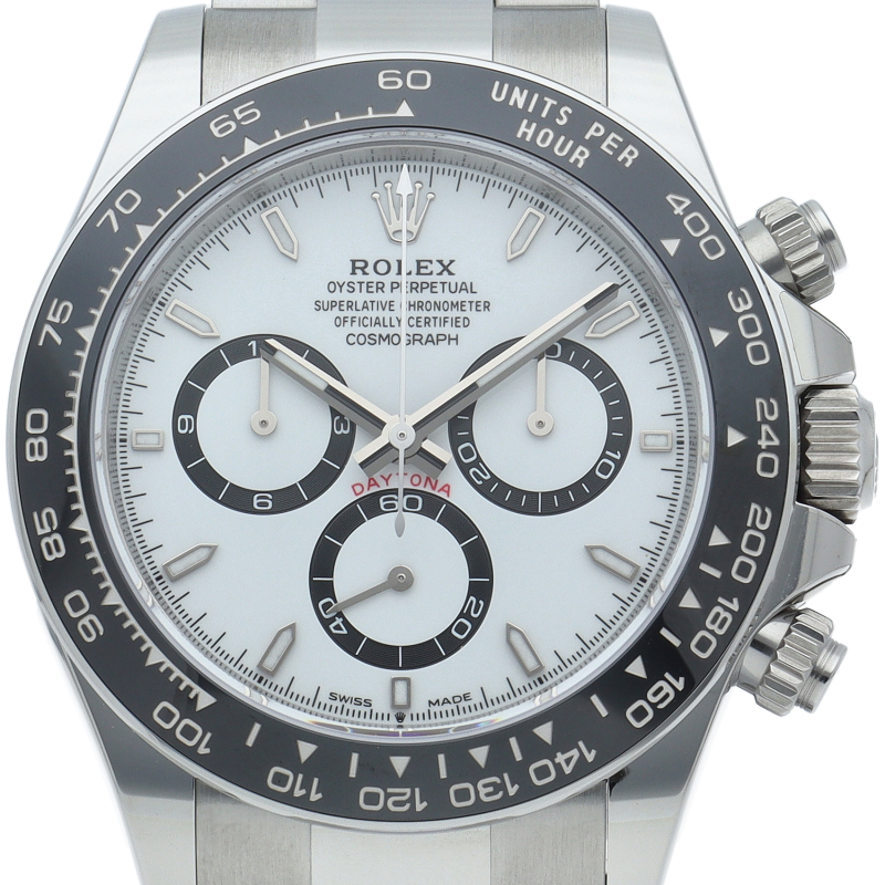 2023年新たにモデルチェンジしたコスモグラフ デイトナ。ロレックスのクロノグラフモデルとして登場したデイトナは、2023年に60周年を迎え第七世代となりました。変更点は、ベゼルのフチ周りにミドルケースと同一素材のメタルが使用され、ムーブメントにはコラムホイール&垂直クラッチ式のキャリバー4131を搭載。72時間パワーリザーブを誇ります。