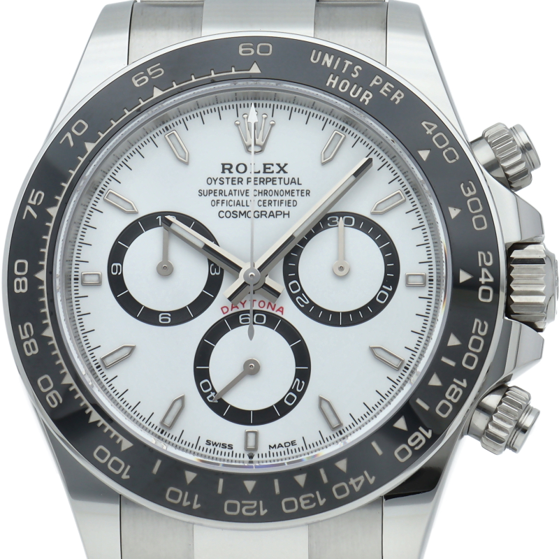 2023年新たにモデルチェンジしたコスモグラフ デイトナ。ロレックスのクロノグラフモデルとして登場したデイトナは、2023年に60周年を迎え第七世代となりました。変更点は、ベゼルのフチ周りにミドルケースと同一素材のメタルが使用され、ムーブメントにはコラムホイール&垂直クラッチ式のキャリバー4131を搭載。72時間パワーリザーブを誇ります。