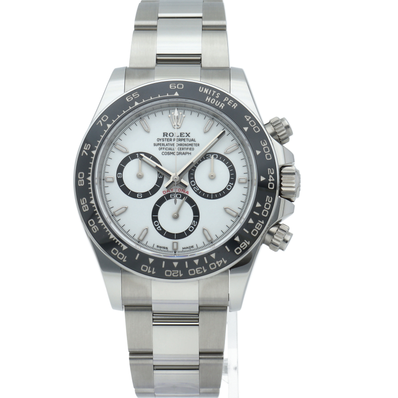 2023年新たにモデルチェンジしたコスモグラフ デイトナ。ロレックスのクロノグラフモデルとして登場したデイトナは、2023年に60周年を迎え第七世代となりました。変更点は、ベゼルのフチ周りにミドルケースと同一素材のメタルが使用され、ムーブメントにはコラムホイール&垂直クラッチ式のキャリバー4131を搭載。72時間パワーリザーブを誇ります。