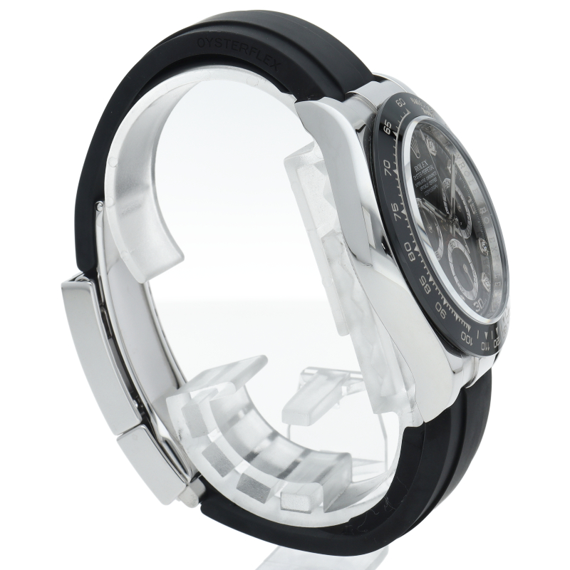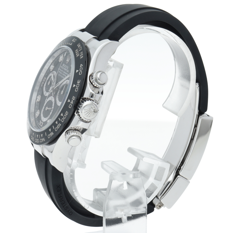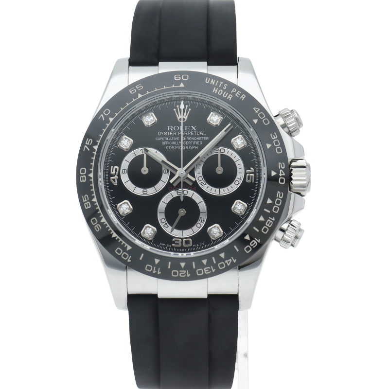 ロレックスのスポーツモデルの最高峰に君臨する「デイトナ」。自社開発クロノグラフムーブメント「Cal.4130」を搭載、機能性・デザイン性を兼ね備えた人気ウォッチ。セラクロムタキメーターベゼル仕様の人気モデルです。8Pダイヤ仕様。