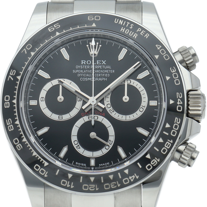 2023年新たにモデルチェンジしたコスモグラフ デイトナ。ロレックスのクロノグラフモデルとして登場したデイトナは、2023年に60周年を迎え第七世代となりました。変更点は、ベゼルのフチ周りにミドルケースと同一素材のメタルが使用され、ムーブメントにはコラムホイール&垂直クラッチ式のキャリバー4131を搭載。72時間パワーリザーブを誇ります。
