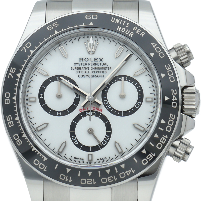 2023年新たにモデルチェンジしたコスモグラフ デイトナ。ロレックスのクロノグラフモデルとして登場したデイトナは、2023年に60周年を迎え第七世代となりました。変更点は、ベゼルのフチ周りにミドルケースと同一素材のメタルが使用され、ムーブメントにはコラムホイール&垂直クラッチ式のキャリバー4131を搭載。72時間パワーリザーブを誇ります。