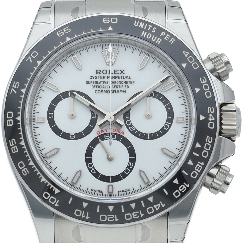 2023年新たにモデルチェンジしたコスモグラフ デイトナ。ロレックスのクロノグラフモデルとして登場したデイトナは、2023年に60周年を迎え第七世代となりました。変更点は、ベゼルのフチ周りにミドルケースと同一素材のメタルが使用され、ムーブメントにはコラムホイール&垂直クラッチ式のキャリバー4131を搭載。72時間パワーリザーブを誇ります。