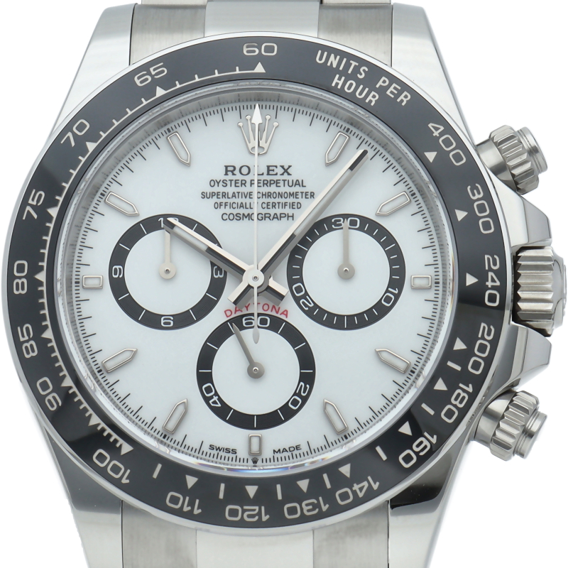 2023年新たにモデルチェンジしたコスモグラフ デイトナ。ロレックスのクロノグラフモデルとして登場したデイトナは、2023年に60周年を迎え第七世代となりました。変更点は、ベゼルのフチ周りにミドルケースと同一素材のメタルが使用され、ムーブメントにはコラムホイール&垂直クラッチ式のキャリバー4131を搭載。72時間パワーリザーブを誇ります。