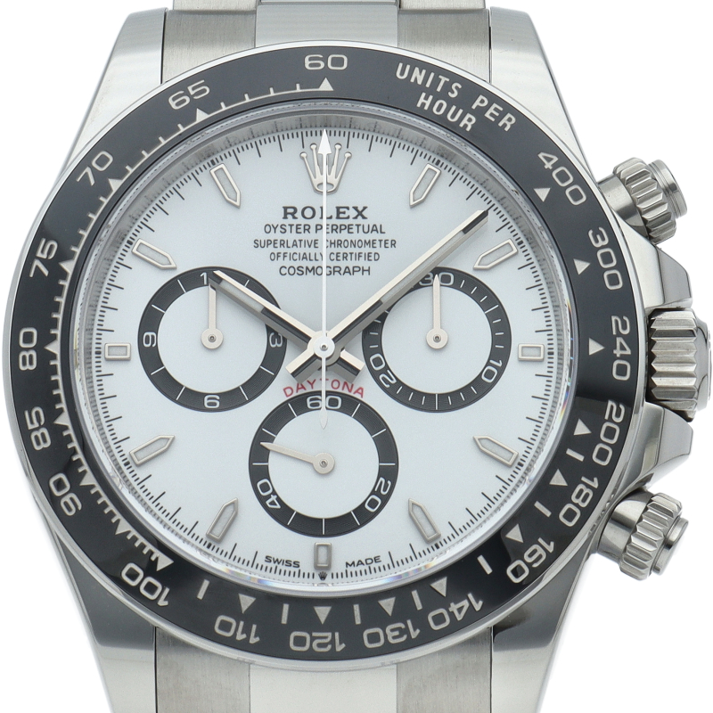 2023年新たにモデルチェンジしたコスモグラフ デイトナ。ロレックスのクロノグラフモデルとして登場したデイトナは、2023年に60周年を迎え第七世代となりました。変更点は、ベゼルのフチ周りにミドルケースと同一素材のメタルが使用され、ムーブメントにはコラムホイール&垂直クラッチ式のキャリバー4131を搭載。72時間パワーリザーブを誇ります。