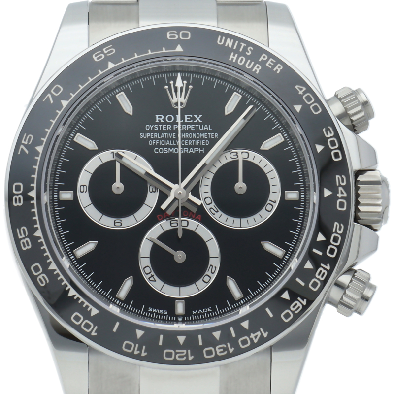 2023年新たにモデルチェンジしたコスモグラフ デイトナ。ロレックスのクロノグラフモデルとして登場したデイトナは、2023年に60周年を迎え第七世代となりました。変更点は、ベゼルのフチ周りにミドルケースと同一素材のメタルが使用され、ムーブメントにはコラムホイール&垂直クラッチ式のキャリバー4131を搭載。72時間パワーリザーブを誇ります。